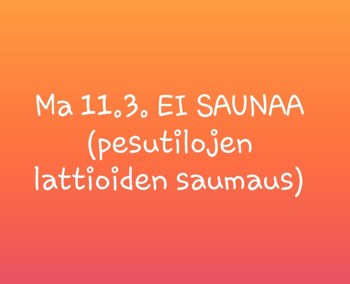 Lännen kyläyhdistys » Ajankohtaista » Ma 11.3. Ei saunaa Ma 11.3. Ei saunaa 6.3.2024 Jaa kaverille: Share on Facebook(Avautuu uudessa ikkunassa) Facebook Share on X(Avautuu uudessa ikkunassa) X Share on WhatsApp(Avautuu uudessa ikkunassa) WhatsApp ← Sukkia UkrainaanKevätretki Punkalaitumelle pe 17.5. →
